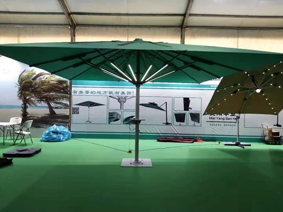 • Nuestra industria paraguas de Meiyang se ha establecido en la exposición, Brillando la gloria de la vida de nuevo ocio en todas partes. En la sala de exposiciones de la industria paraguas de Meiyang, Se organizan una variedad de parasolas diferentes frente a los ojos. El estilo es simple y el diseño es fácil de usar. Algunos son adecuados para el descanso y el ocio familiares al aire libre., y algunos son adecuados para sombreado escénico, que atrajo a una gran cantidad de invitados en casa y en el extranjero.
